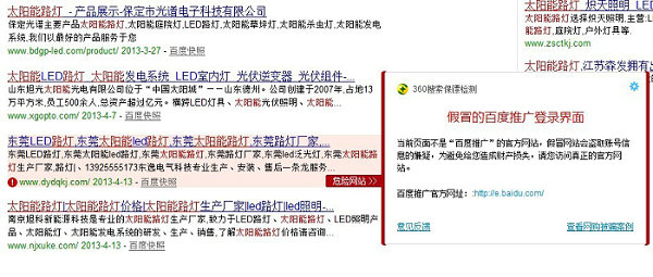 360搜索保鏢對百度搜索結果的檢測