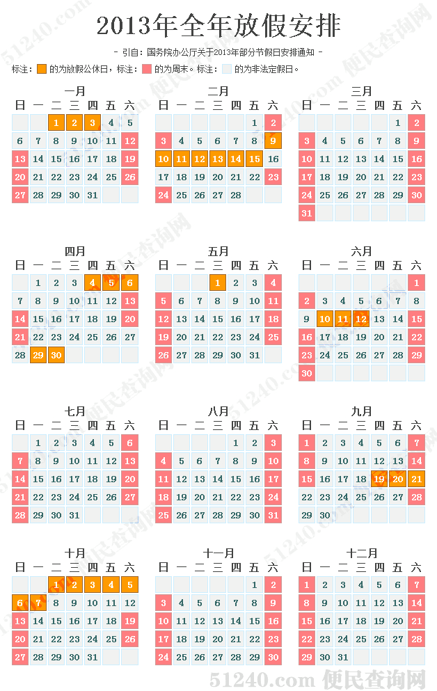 2013年國家法定節(jié)假日放假時間安排