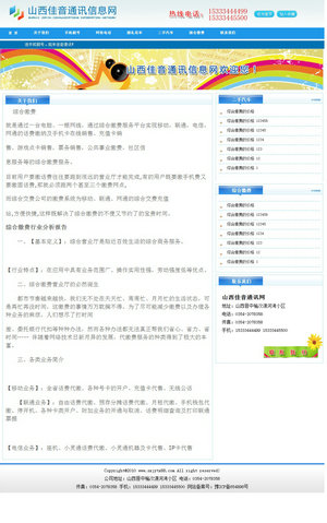 山西佳音通訊,是一家專業(yè)通訊公司,主要經(jīng)營: 綜合繳費 就是通過一臺電腦、一根網(wǎng)線,通過綜合繳費服務(wù)平臺實現(xiàn)移動,聯(lián)通,電信,網(wǎng)通的話費繳納及手機卡在線銷售、充值卡銷 售、游戲點卡銷售,票務(wù)銷售,公共事業(yè)繳費,社區(qū)信 息服務(wù)等的綜合繳費服務(wù)。 目前用戶要繳話費往往要跑到很遠的營業(yè)廳才能完成,有的用戶既要繳手機費又要繳固話費,那就必須跑兩個甚至三個繳費網(wǎng)點, 而綜合交費公司的繳費系統(tǒng)為移動、聯(lián)通、網(wǎng)通的綜合交費充值 站,方便快捷,這樣既解決了綜合繳費的不便又節(jié)約了的寶貴時間。 綜合繳費行業(yè)分析報告 一、【基本定義】:綜合營業(yè)廳是貼近百姓生活的綜合商務(wù)服務(wù)。 【行業(yè)特點】:在應用中具有業(yè)務(wù)范圍廣、操作實用性強,勞動強度低等優(yōu)點。 二、綜合繳費營業(yè)廳的必然誕生 都市節(jié)奏越來越快,我們無不處在天天忙、周周忙、月月忙的生活狀態(tài),可是再忙再沒時間,這繳費的事情萬萬耽擱不得。為了盡可能減少繳費以及辦理各種業(yè)務(wù)的麻煩,人們想盡了打時間 差、委托銀行代扣等種種辦法,然而各種辦法都無法真正幫我們省心、省力、省時間…… 伴隨著網(wǎng)絡(luò)技術(shù)日新月異的發(fā)展,代繳費服務(wù)的種類得到了極大的豐富。 三、各類業(yè)務(wù)簡介 【移動業(yè)務(wù)】:全省話費代繳、各種號卡的開戶、充值卡代售、無線公話 【聯(lián)通業(yè)務(wù)】:自由話費代繳、預存分攤話費代繳、月租代繳、手機錢包代繳、停開機、各種卡類開戶、附加業(yè)務(wù)的開通與取消、話費明細查詢及打印聯(lián)通票據(jù) 【電信業(yè)務(wù)】:座機、小靈通話費代繳、小靈通機器及卡代售、IP卡代售