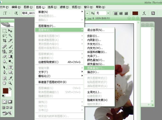 選擇菜單“圖層”,然后選擇“圖層樣式”,再根據個人愛好選擇項目.