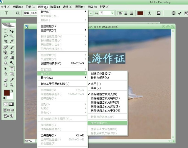 方法:選擇菜單“圖層”,然后選擇“文字”,最后選擇“文字變形”,根據你的需要可以任意選擇,隨心所欲。你動手試一試很簡單。
