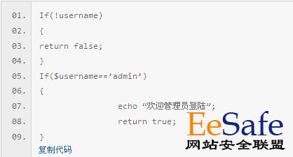 ![]() 很明顯,這是判斷登陸的是否是管理員,很多網站也用這個邏輯判斷其他重要的條件。 看上去這段代碼很正確,但其實有個致命的錯誤,它假定$isadmin在沒賦值的時候是空值,但由于php語言為了使php代碼訪問用戶的輸入盡可能容易,php把輸入數據作為全局變量來處理。所以攻擊者可以創建任意全局變量并賦值。 如何避免這樣最容易被會略的問題,如果你網站使用的是PHP程序開發,如果你已經這樣做了,并且web應用程序變量很多的話,最節省效率的辦法就是修改php的track_vars選項。 2.網站雙條件認證安全問題 判斷用戶名和密碼,先判斷是否為空,然后從數據數據庫找同時符合條件的數據。 如果采用這樣的邏輯將直接導致sql注入。 如果你要增加或修改這樣的功能,程序邏輯應該是:首先,找到數據庫中用戶名符合的數據(當然用戶名在數據庫中必須是唯一的),然后查看這條數據中對應的密碼是否和要驗證的密碼相同,這樣就避免雙認證問題。 3.用用戶名去判斷用戶權限 很多網站都有這樣的問題,比如