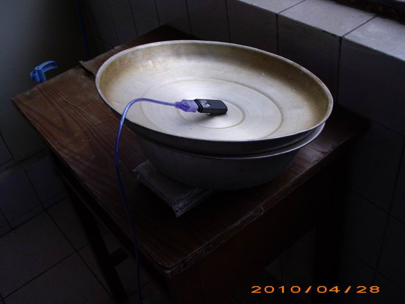 可以看到用銅絲把上網(wǎng)卡懸立起來后,1X信號比之前更好了,晚上上網(wǎng)的速度也能穩(wěn)定在80K/秒左右。 整個信號增強(qiáng)器,只花了18元購置一根5米的USB數(shù)據(jù)延長線,上面用的是一個蒸饅頭用的蒸鍋的鍋蓋,下面是一個鋁制的臉盆,用一個東西把下面的臉盆一邊墊高一點(diǎn),讓鍋蓋的弧面能朝向窗口方向。就是這么簡單的東西,使我終于體驗到了所謂的電信3G高速上網(wǎng)。如果你也有我以前的問題,也可以試試。(藍(lán)浪原創(chuàng)文章,轉(zhuǎn)載請注明出處:lanlang.com/blog/u/lanlang)